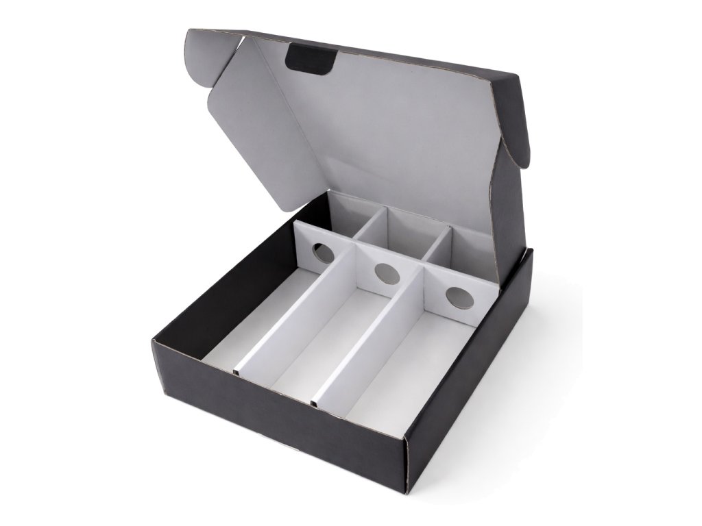 Praktickým benefitem je také snadná manipulace. Tvar krabičky je navržen s ohledem na pohodlné přenášení a bezpečné uložení tří standardních lahví vína. Krabička je vhodná nejen pro samotné předání dárku, ale i pro archivaci nebo převoz vín na degustace, oslavy či rodinná setkání. Díky své univerzálnosti se stává praktickým doplňkem pro každého milovníka vína.