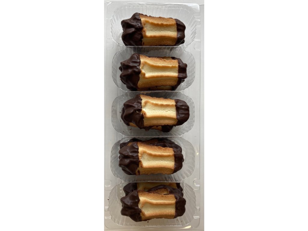 SLOŽENÍ: Pšeničná mouka, hořká čokoláda 23,8 % (cukr, kakaová hmota, kakaové máslo, mléčný tuk, emulgátor: sójový lecitin, přírodní vanilkové aroma), rostlinné tuky (palmový, kopra), cukr, řepkový olej, vejce z volného chovu, sůl, přírodní aroma. Hořká čokoláda: kakaová sušina minimálně 46 %. Může obsahovat stopy jiných obilovin (oves), ořechů (lískové ořechy, mandle, pistácie). Skladujte v chladu a suchu.