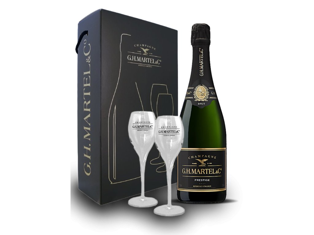 G.H.Martel & Co Prestige Brut Champagne Aoc + 2 sklenice v dárkovém boxu, 0,75l