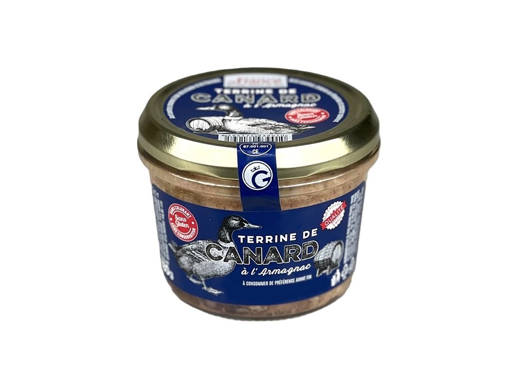 Francouzská terina je tradiční francouzská hrubozrnná paštika. Připravuje se ze vepřového, telecího nebo drůbežího masa, ale také z kachních či husích jater. Tento druh obsahuje větší kousky masa, než je tomu u klasické paštiky. Francouzské paštiky se výrábějí tradiční metodou bez přídavku barviv, konzervantů a emulgátorů.Skladování při teplotě do 25°C. Po otevření uchovávejte při teplotě pod 4°C a spotřebujte do 2-3 dnů. Nejlépe podávejte chlazené.
