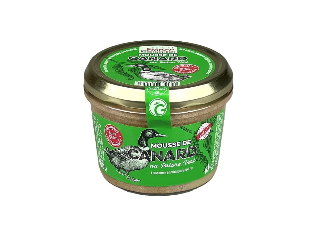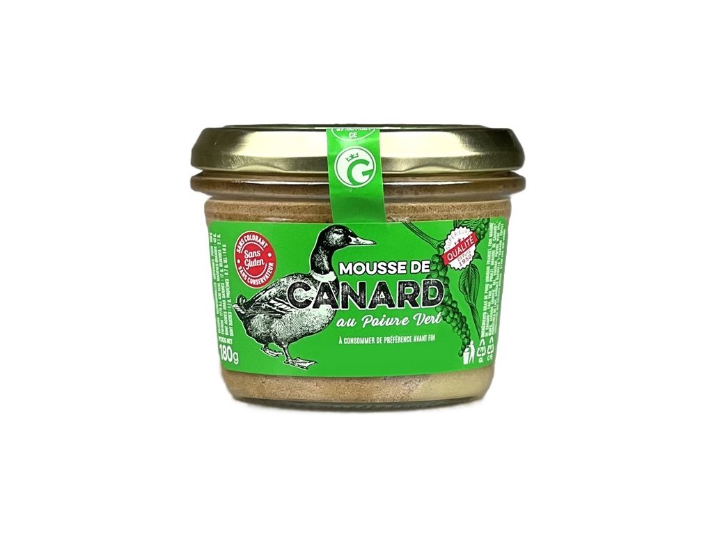 Složení: sádlo (původ Francie), libová kachní játra*, voda, kuřecí játra, kachní tuk*, vejce, modifikovaný škrob, sůl, koňak, zelený pepř 10 %, mléčný protein, přírodní aroma, (*kachna 26 %) Alergeny: vejce, mléčný protein.