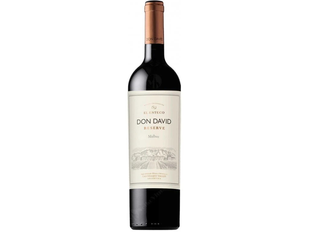DON DAVID je řada vín typu rezerva, tedy vín vyrobených v údolí Cafayate v severní Argentině, které byly stařeny v nových sudech z francouzského dubu deset a více měsíců. Barva tohoto vína je živě červená s fialovými tóny. Vůně je květinová, bohatá, připomínající růže. Koncentrovaná ovocná chuť je příjemná s dochutí vanilky, tabáku a čokolády. Vhodná teplota k servírování je 16 - 18 °C. Ideální doplněk k červeným masům a zvěřině připravované na roštu. Skladovací potenciál je 5 - 6 roků.