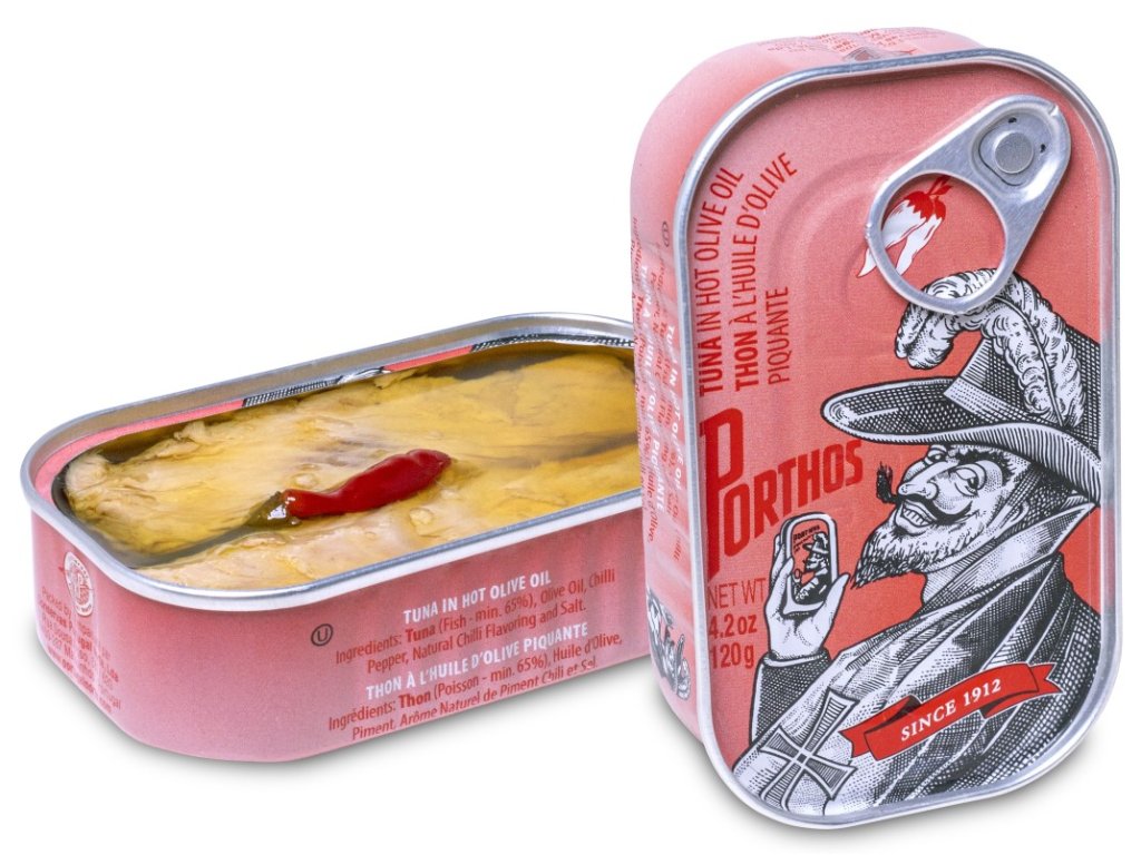 - Porthos, zavedená společnost na konzervované ryby v přímořském městě Matosinhos v Portugalsku, exportuje vysoce kvalitní sardinky pocházející z okolních vod, lovené udržitelnými metodami. Velké, masité a chutné sardinky nejsou uzené, ale vařené, a ručně balené buď do olivového oleje, pálivého rostlinného oleje, nebo do jemné či pikantní rajčatové omáčky – marinády tak lahodné, že je možná budete chtít přelít přes salát.