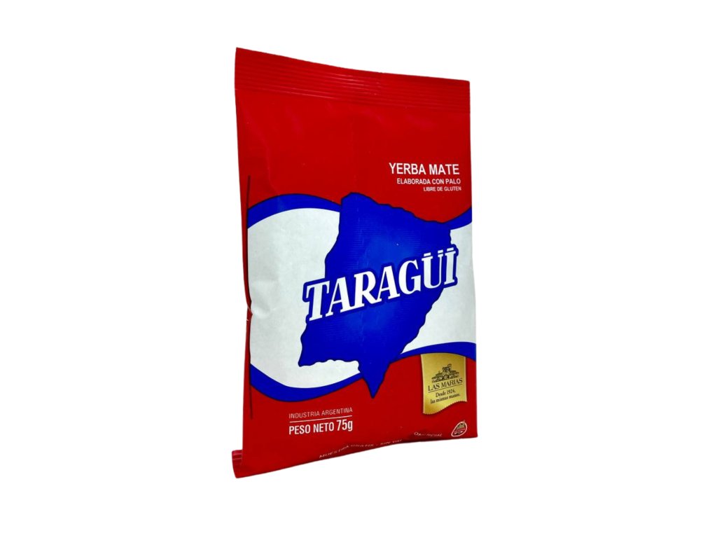 An iconic Argentine yerba maté from the brand Taragüi, one of the best-selling in South America. This classic blend features medium-cut Ilex paraguariensis leaves with a natural mix of stems and dust, delivering a full-bodied and intense infusion. The flavor profile is earthy, slightly smoky, with subtle hints of citrus peel and tobacco. The 75 g sample pack is perfect for first-time tasting or travel use. Suitable for traditional calabash preparation or modern brewing methods.
