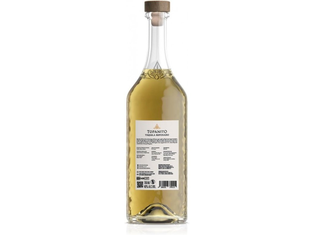 Topanito Reposado se po destilaci ukládá na několik měsíců do sudů z amerického dubu. Právě toto zrání obohacuje čerstvou chuť agáve o jemné tóny vanilky, medu a dřeva, aniž by potlačilo původní charakter suroviny. Výsledkem je harmonická tequila s vyváženým aroma, jemnou texturou a komplexní chutí, která osloví znalce i ty, kteří teprve objevují svět kvalitních destilátů. Lahvování probíhá přímo v destilerii, což zaručuje konzistentní kvalitu každé jednotlivé láhve.